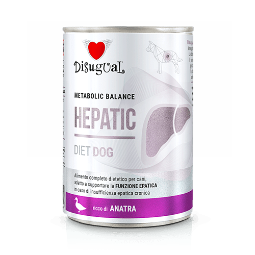 Disugual Karma Mokra Dla Psa Weterynaryjna Hepatic Kaczka 400 g to pełnoporcjowa dietetyczna karma dla psów, wspomagająca FUNKCJONOWANIE WĄTROBY w przypadku przewlekłej niewydolności wątroby.