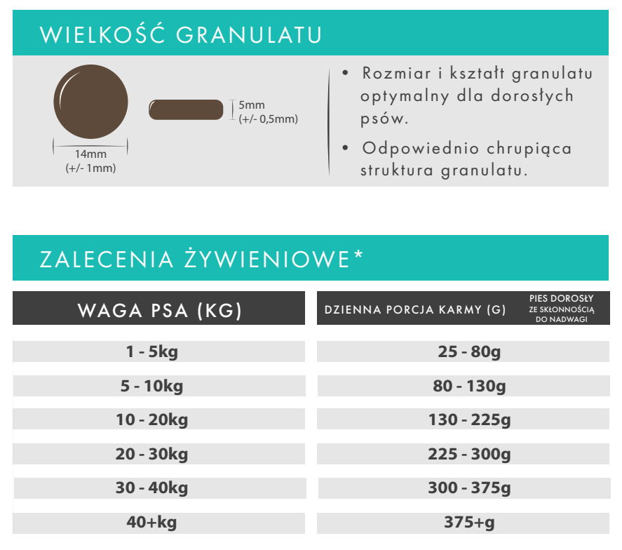 Naszym założeniem w wypadku tej karmy jest dostarczenie najwyższej jakości produktu w jak najbardziej ekonomicznym i ekologicznym opakowaniu. Grafika jest zminimalizowana, a samo opakowanie papierowe, przy wykorzystaniu recyklingu makulatury i przeznaczone po wykorzystaniu do dalszej segregacji. Dzięki temu nie tylko staramy się dbać o środowisko, ale mamy też możliwość zaoferowania naszym klientom bezzbożowego produktu w rozsądnej cenie, który jest porównywalny jakościowo z dużo droższymi markami.