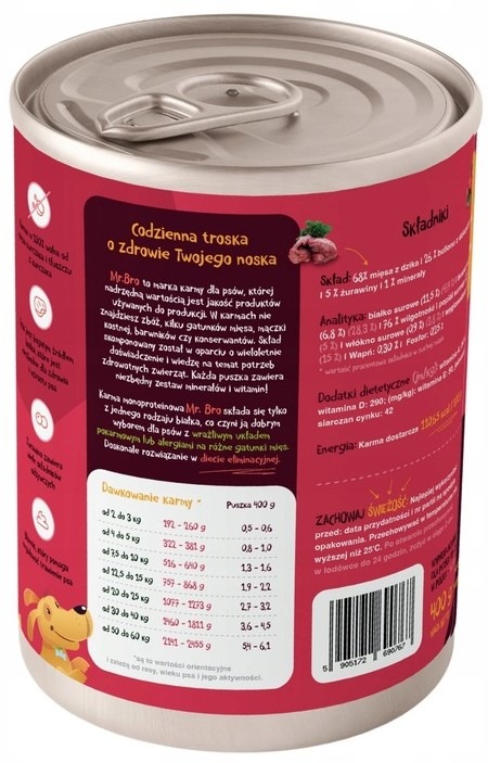 Mr. Bro Dzik z Żurawiną Monoproteinowa karma mokra dla psa puszka 400g