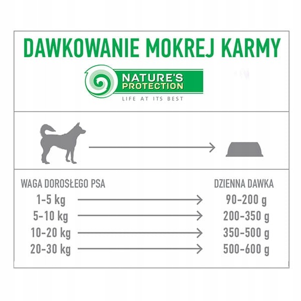 Sposób karmienia: podawać w temperaturze pokojowej. Zaleca się dostosować ilość karmy do poziomu aktywności psa, jego rasy i wieku. Podawać 1 lub 2 posiłki dziennie.