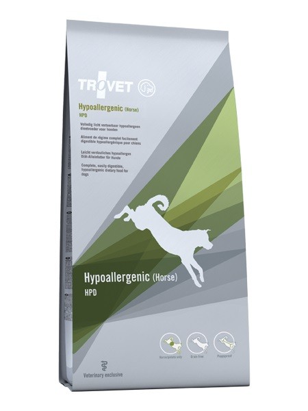 Dieta Trovet HPD jest pokarmem pełnoporcjowym przygotowanym z produktów najwyższej jakości, o których wiadomo, że nie powodują alergii pokarmowej. Wysokiej jakości mięso konia jest jedynym źródłem białka, natomiast węglowodany pochodzą wyłącznie z ziemniaków. Dieta Trovet HPD nie zawiera produktów mlecznych, glutenu, laktozy, które mogą być przyczyną nietolerancji pokarmowej.